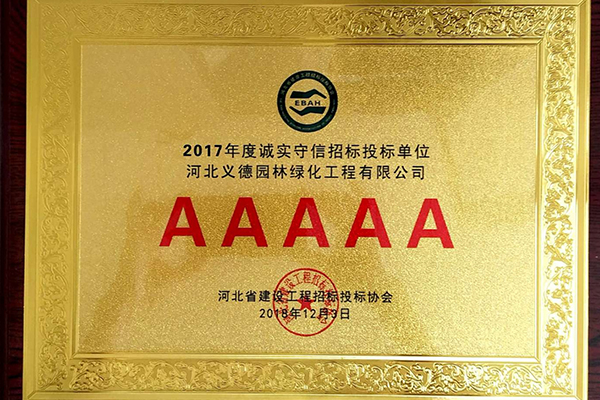 2017年度誠實守信招標(biāo)投標(biāo)單位5A牌匾